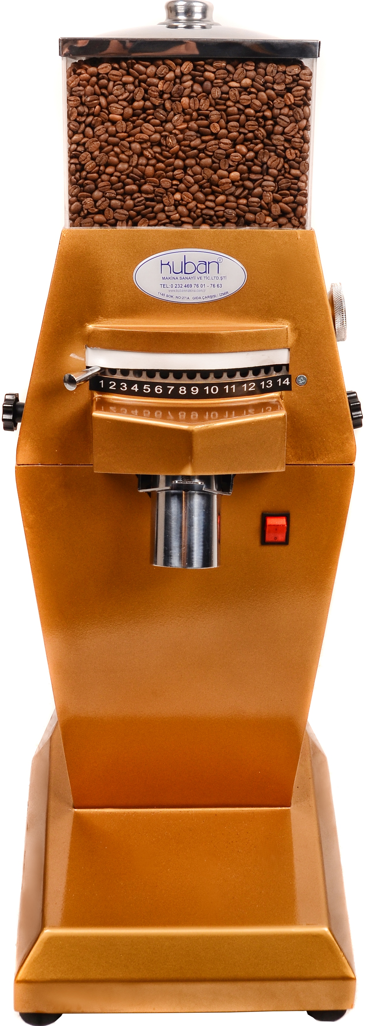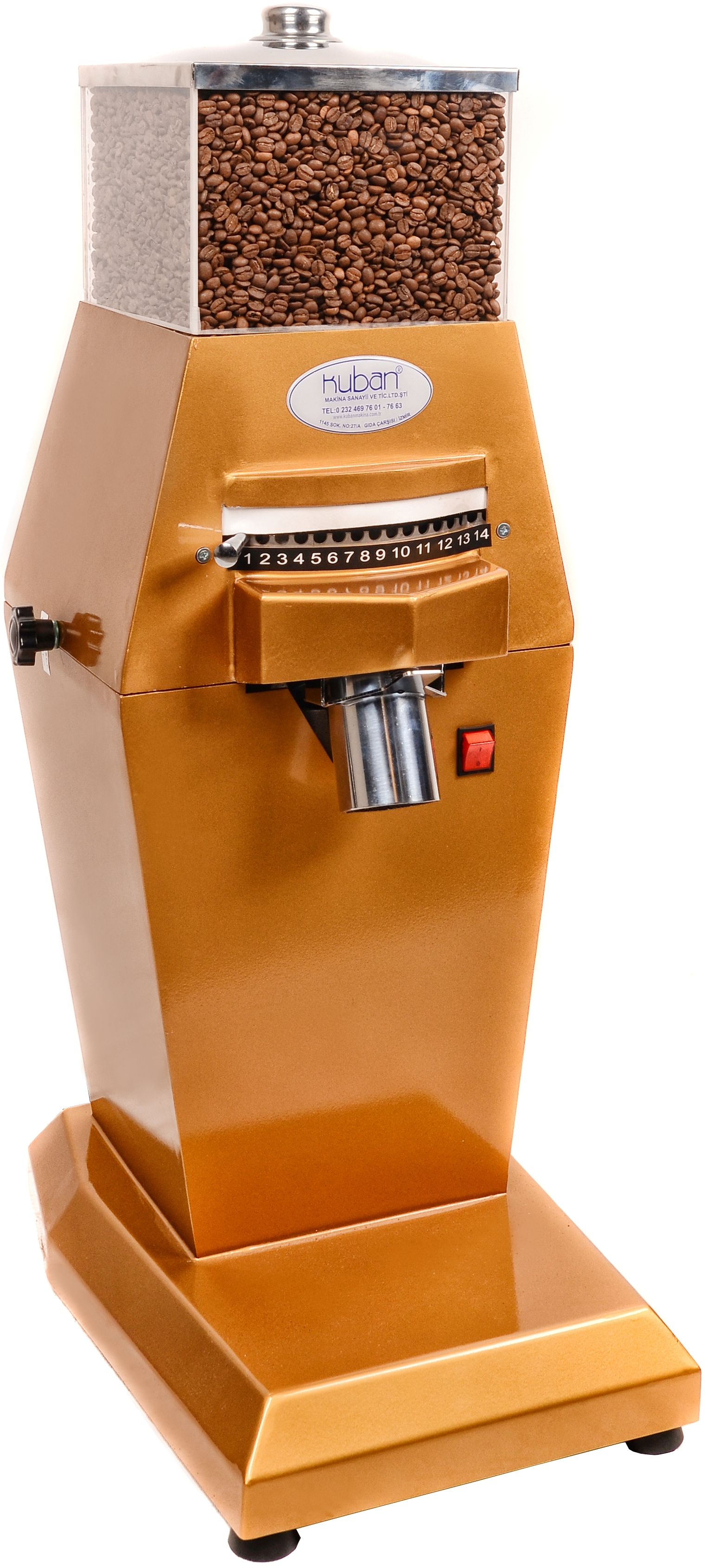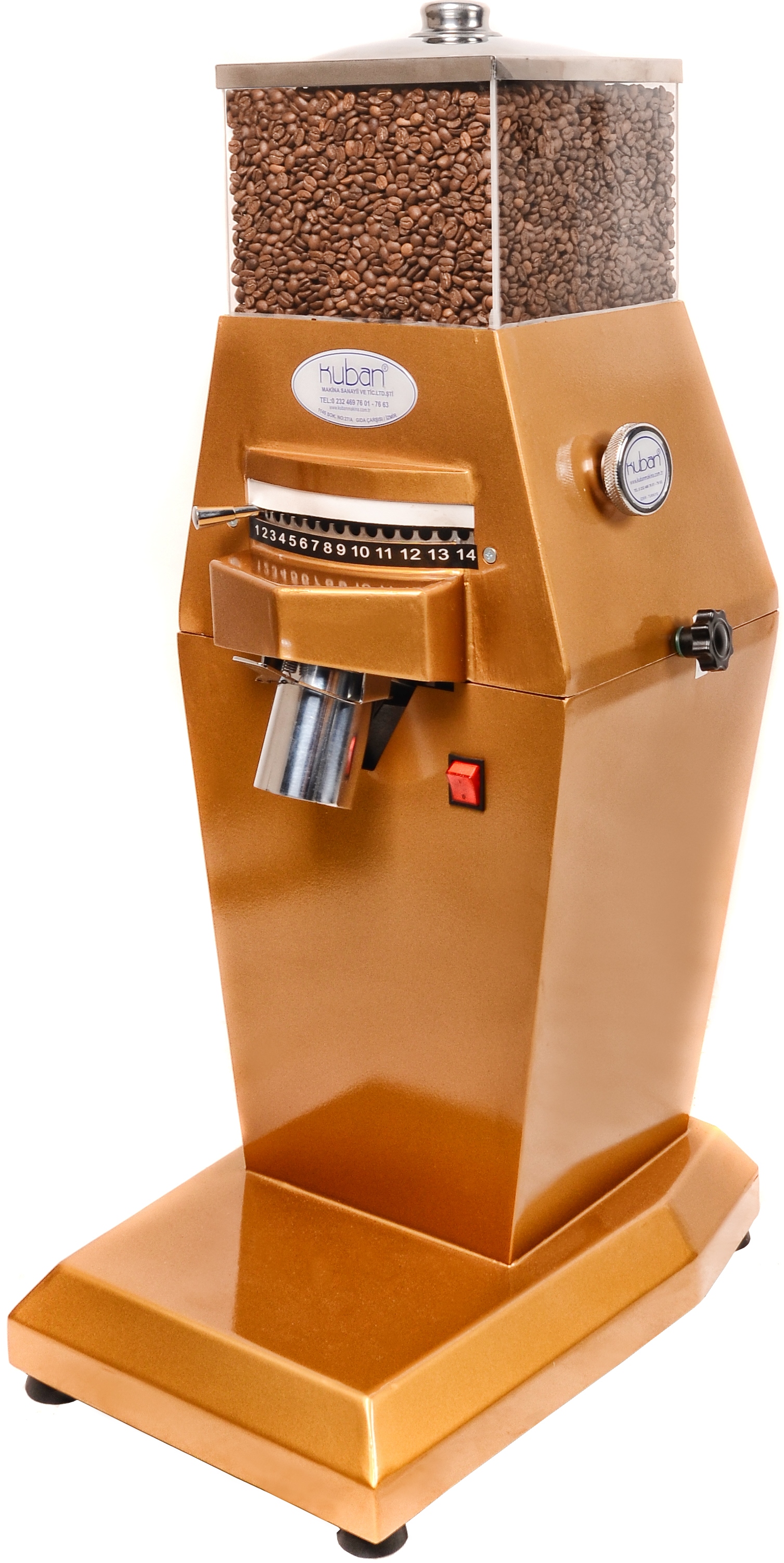 Semi-Industrial Coffee GrindersProduced by Kuban Makina. It is made of high engine power and 120mm steel wheelsground coffee beans. ThisgrinderAvailable for commercial and industrial matters.