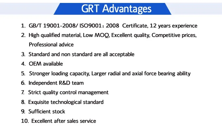 Quality control service:With our comprehensive inspection methods, our quality control covers material, heat treatment, dimensions, profile, roughness, clearance, noise and so on. Our experienced QA team is able to control quality whatever during the production, or before the shipment, to guarantee that our customer will only receive quality, but not trouble.