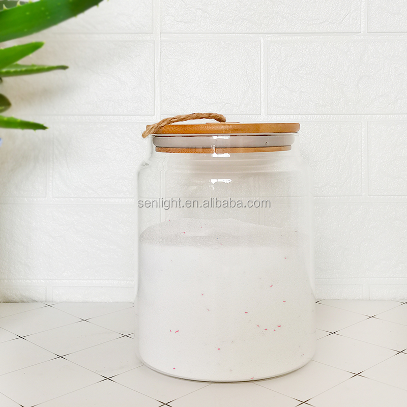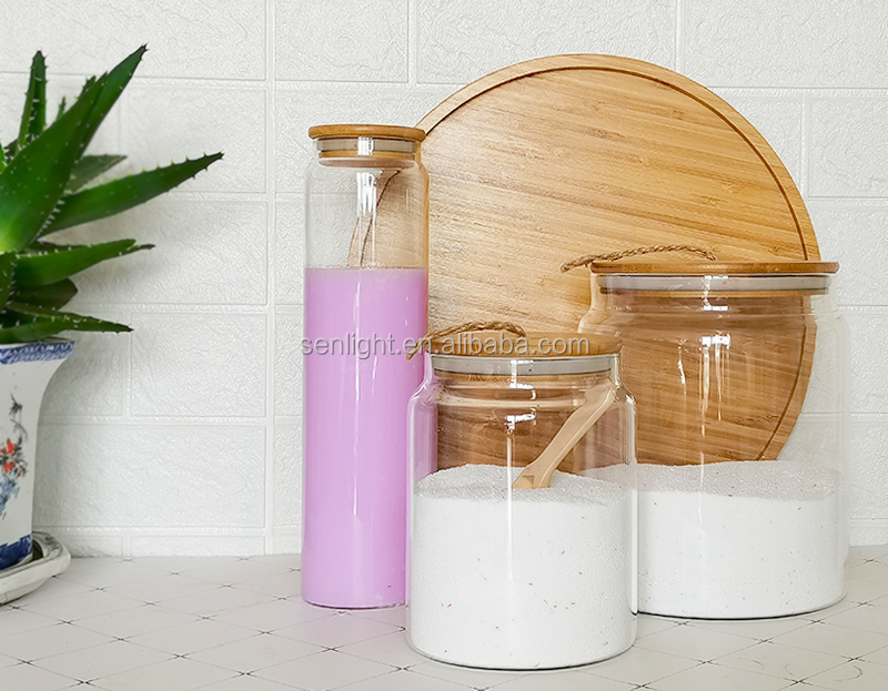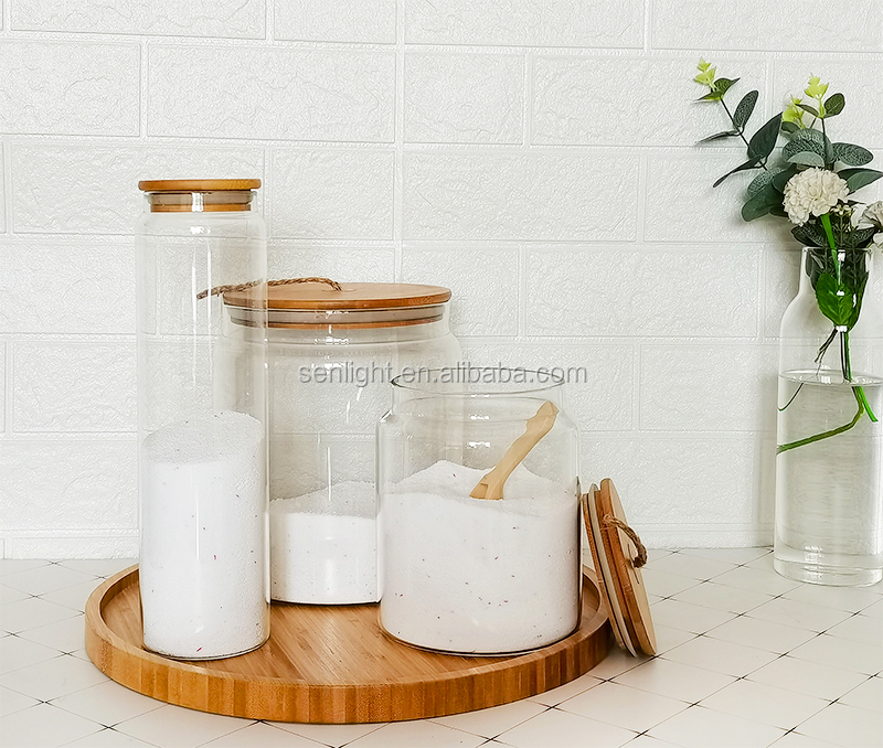 large size borosilicate glass storage jar bathroom laundry glass jar set with bamboo lid wood scoop tray