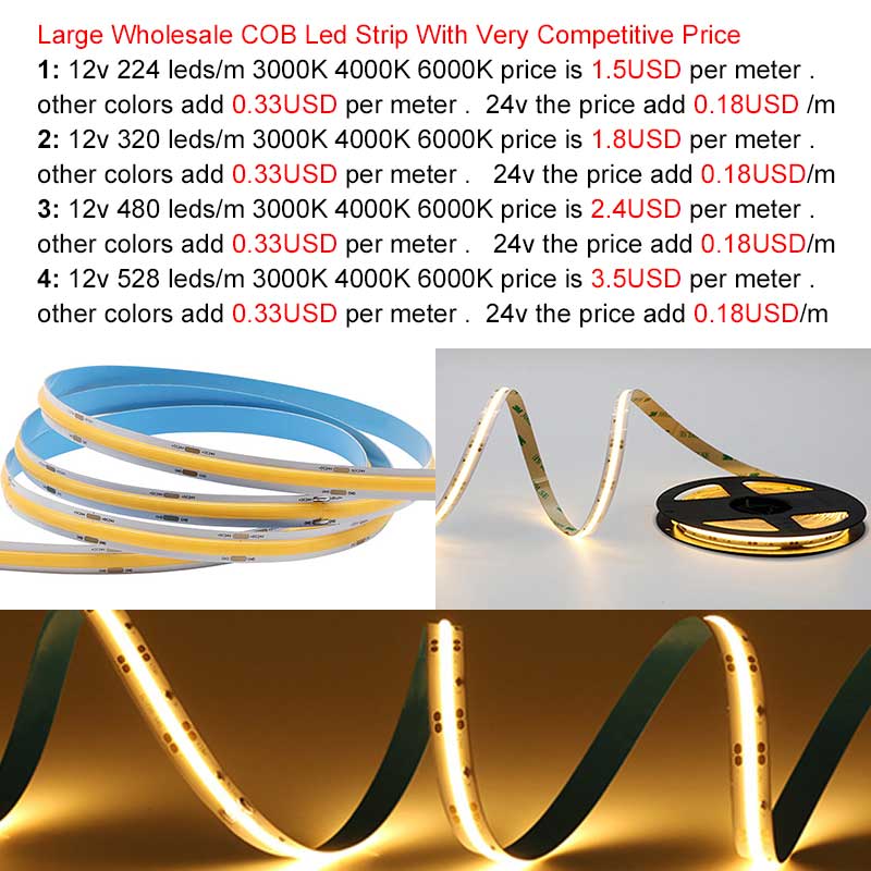cheap wholesale 12v 24v cob led strip: