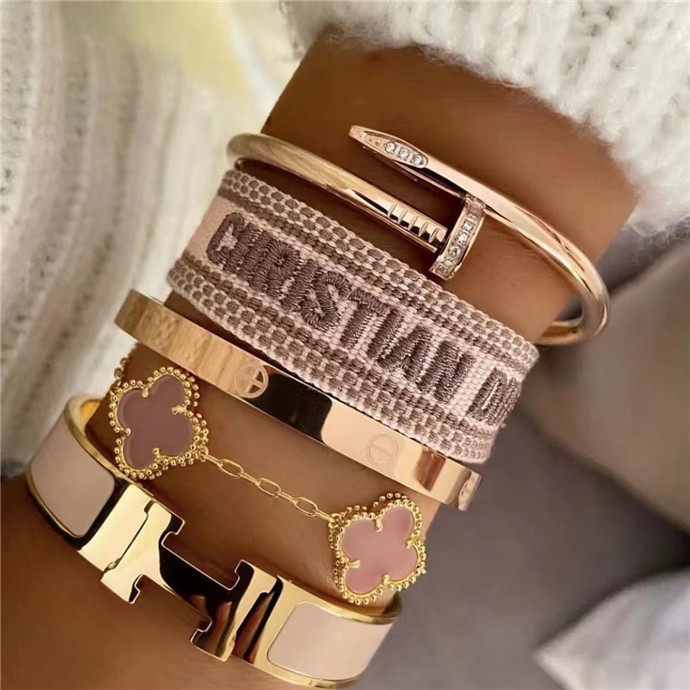 luckyee - New Waterproof Stainless Steel Bangle Bracelet Gold Plated Zircon Stud Bracelet Women's 2022 Jewelry