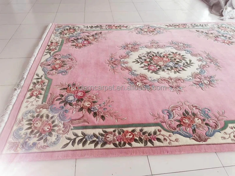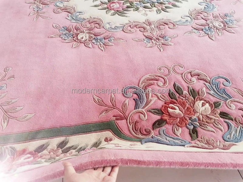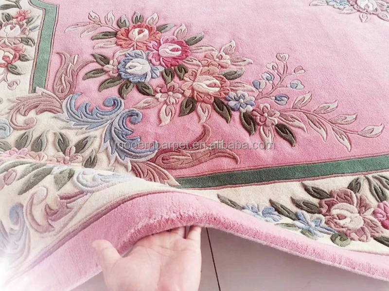 Luxury hand knotted pure handmade chinese aubusson wool carpet rugs for home villas hotel bed room living room