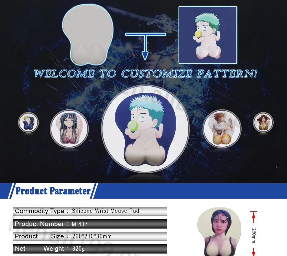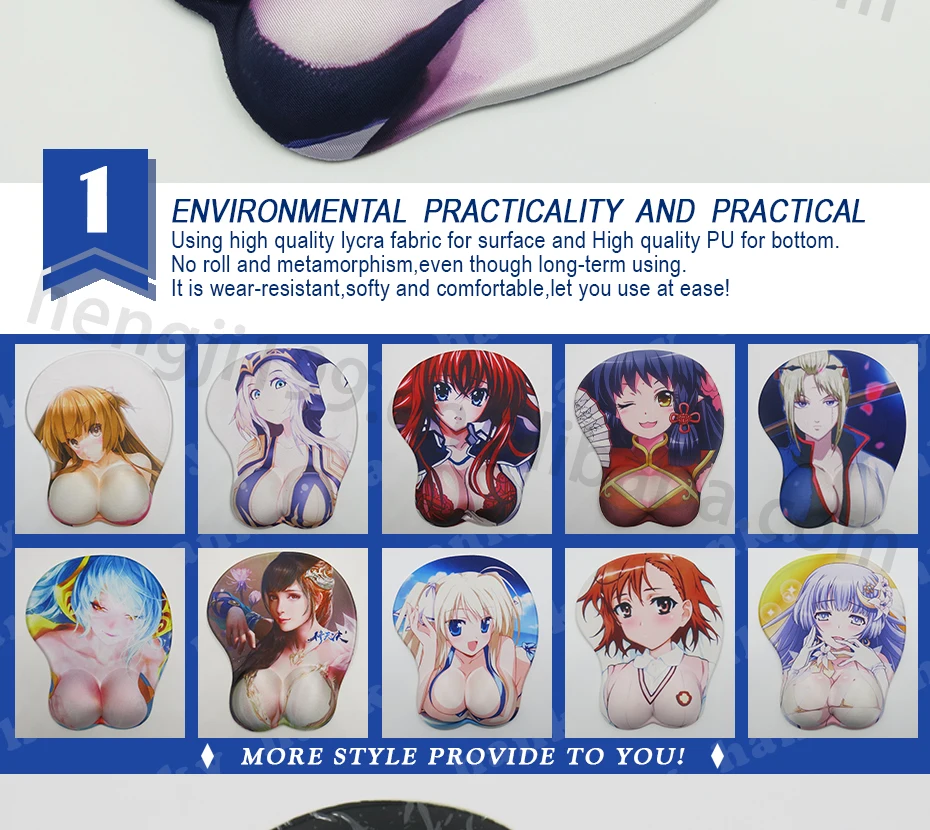 open sexy girl full photo wrist rest 3d anime custom boob silicon mouse pad