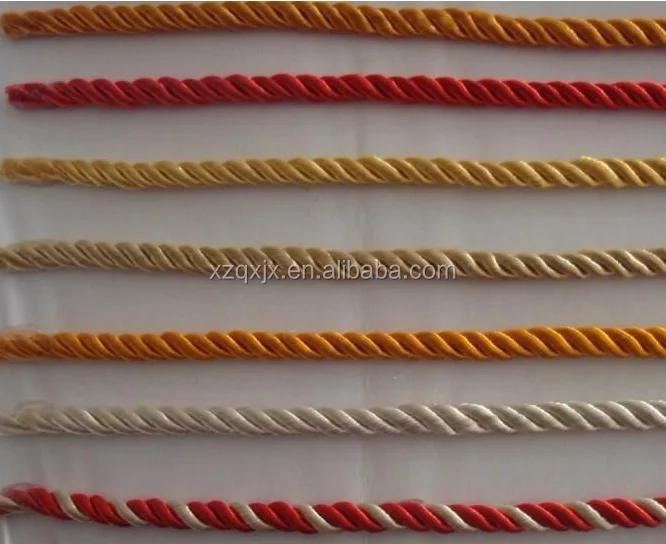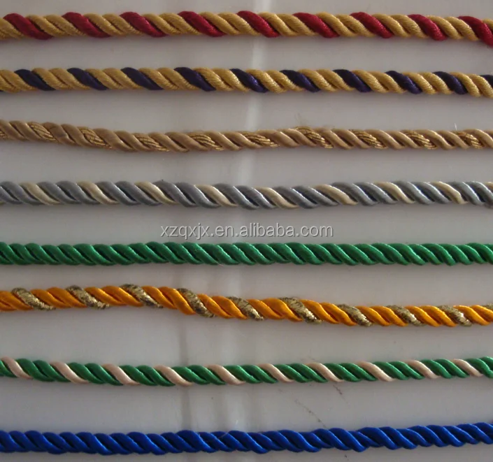 Usage | Three strands twisting with core inside, suitable for various kinds of materials such as cotton, PP, silk, fiber etc. Widely used to make paper bag laces, decoration laces, bedding, fringe,clothes etc. |
