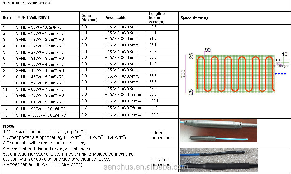 | radiant heat floor volt: | 110V,120V,220V,230V,240V; | Model Number: | SHHM-90w/m2; |