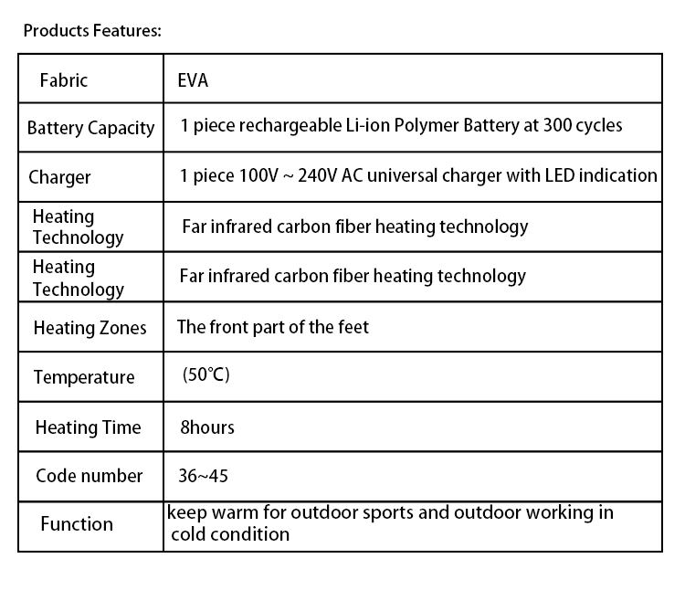 rechargeable battery heating foot warmer electric shoes