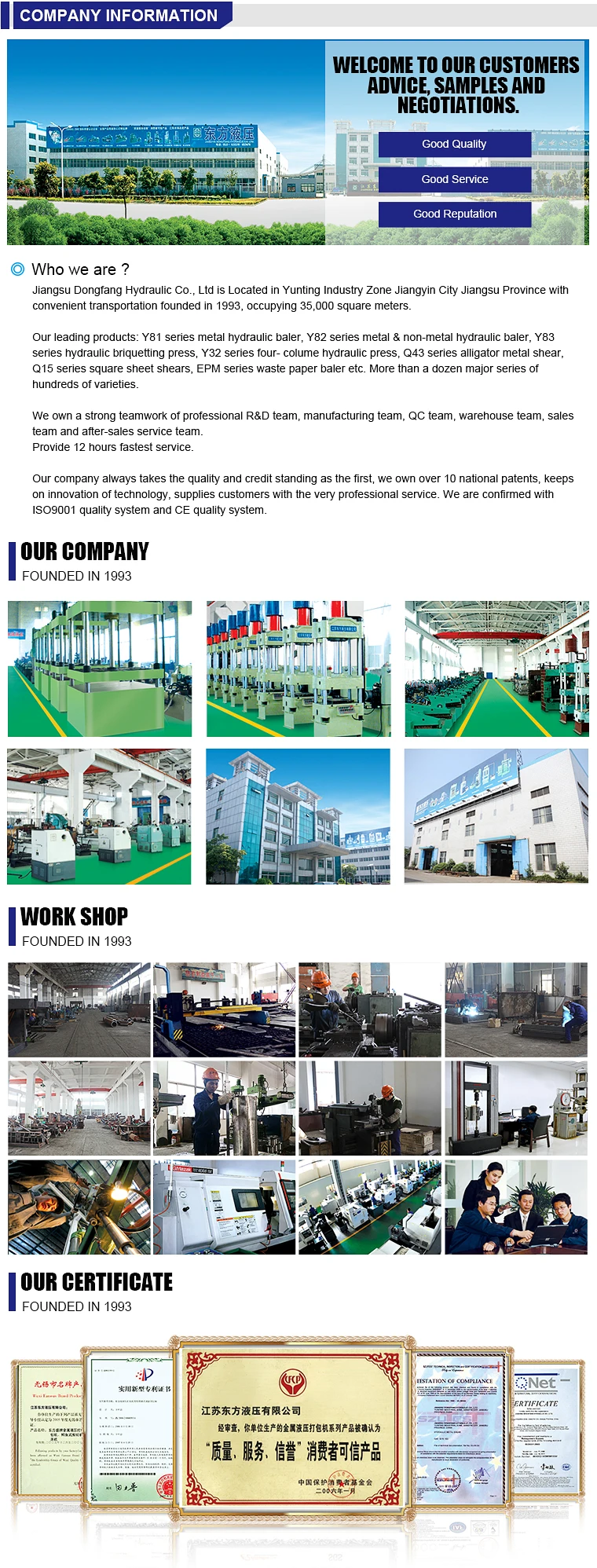 | Packaging Detail: | Package: naked packing or film package for Y81 series metal hydraulic baler; | Supply Ability: | 35 Sets per Month; |