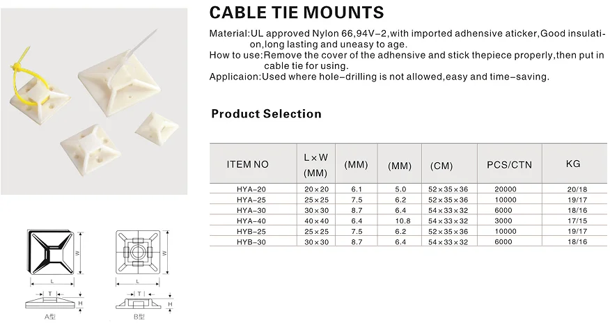 | Brand Name: | HRYA; | Name: | self adhesive tie mount; |