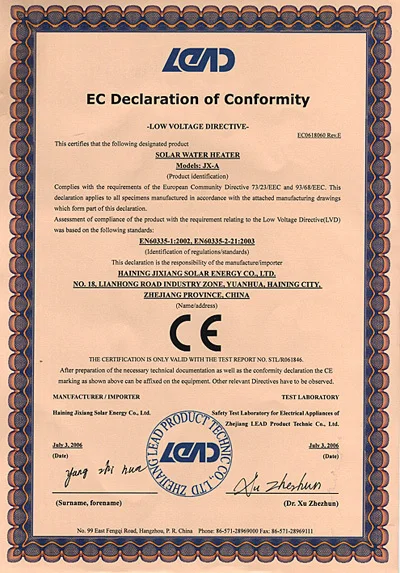 ISO9001, SGS, EN12975, Solar Keymark and China Famous Trademark, CCC, CE.