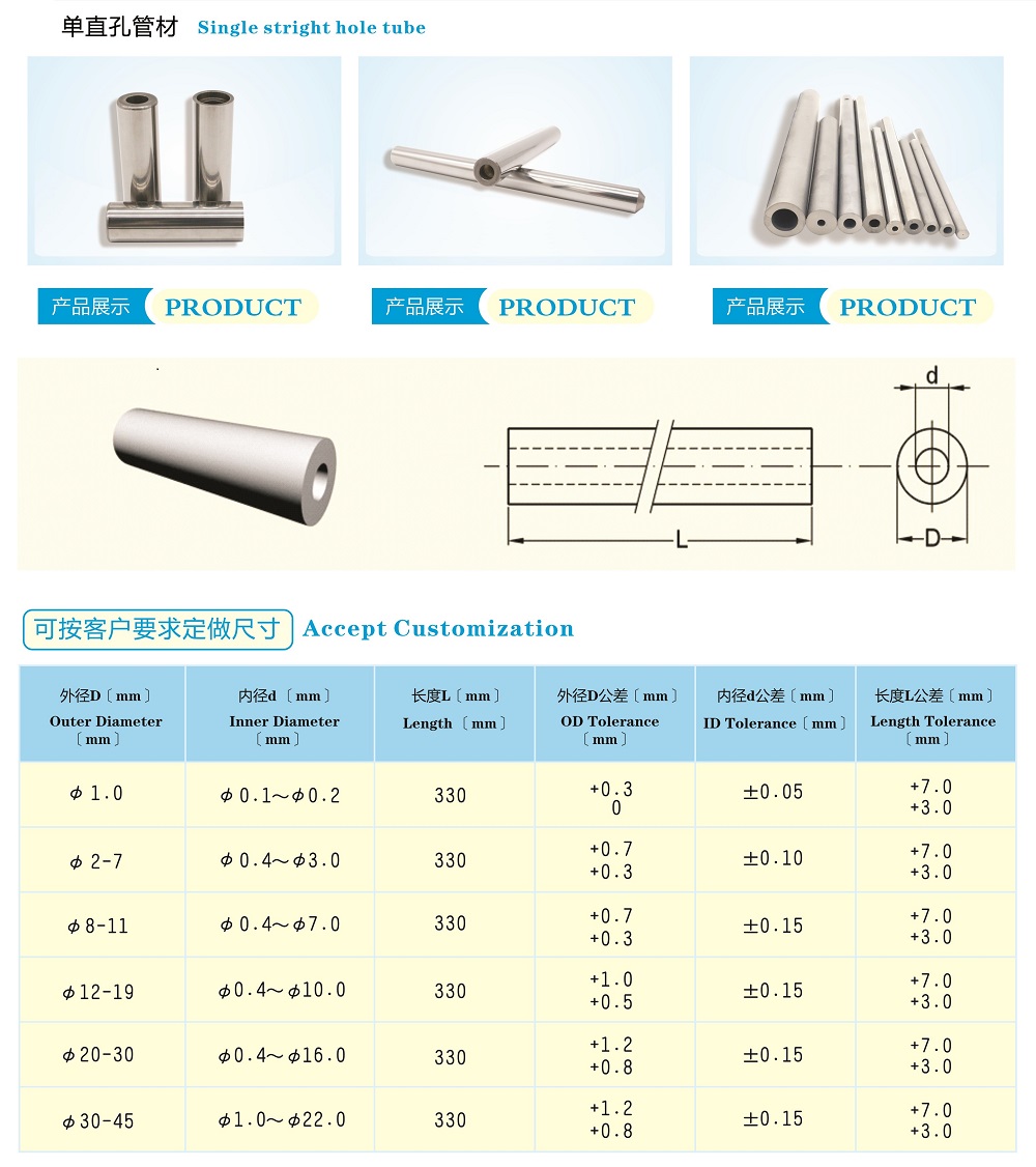 unground tungsten cemented carbide single straight hole tube