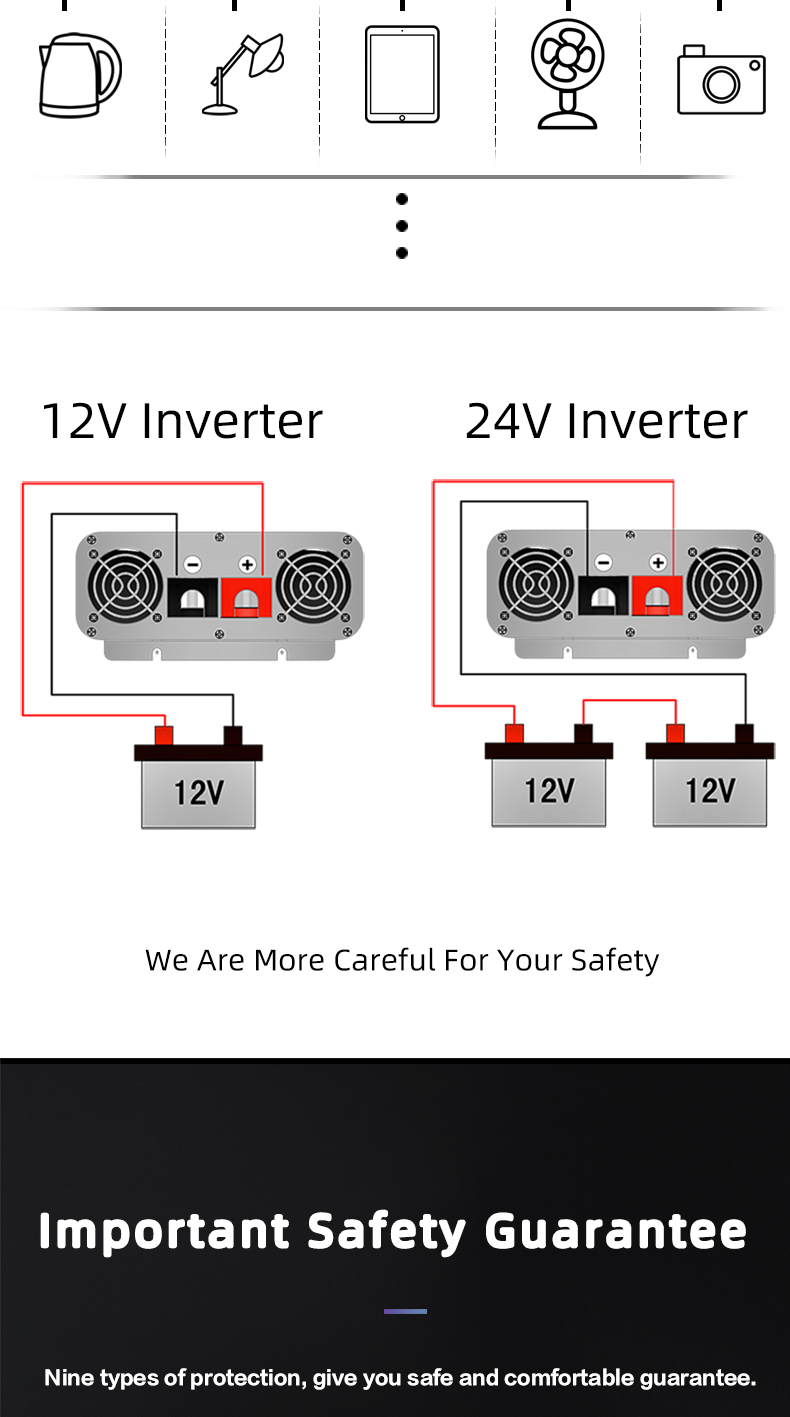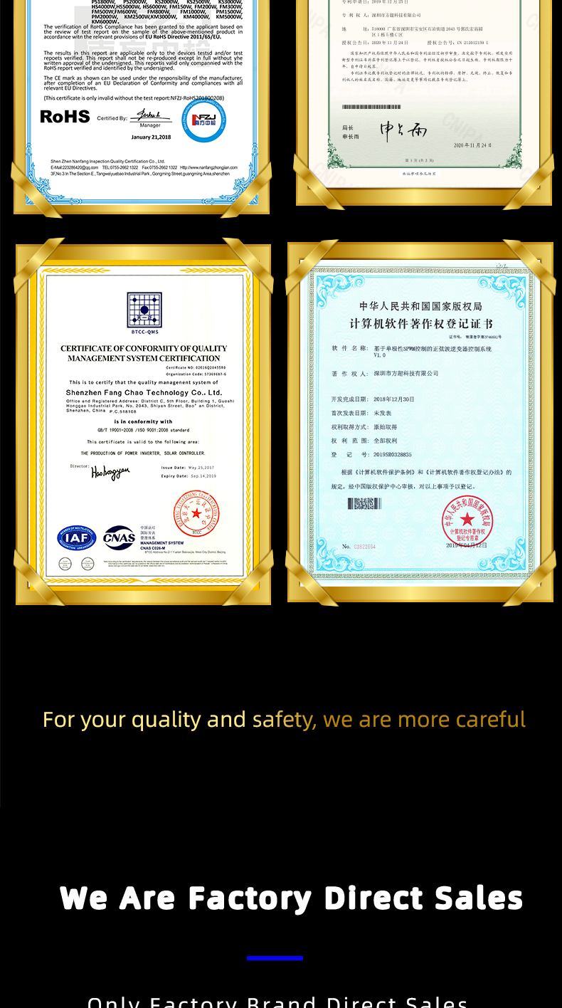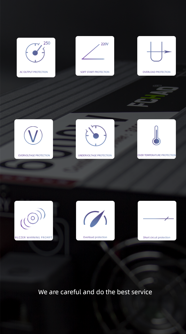 A: In the domestic market, high and low frequency inverter brands are mixed together. There are many low-cost inverters that are actually assembled by small unlicensed workshops. Rough, in order to reduce costs and use substandard components for assembly, there is a great safety risk! In order to protect the personal and property safety of your loved ones, please don't covet low prices, be sure to choose a reliable inverter!