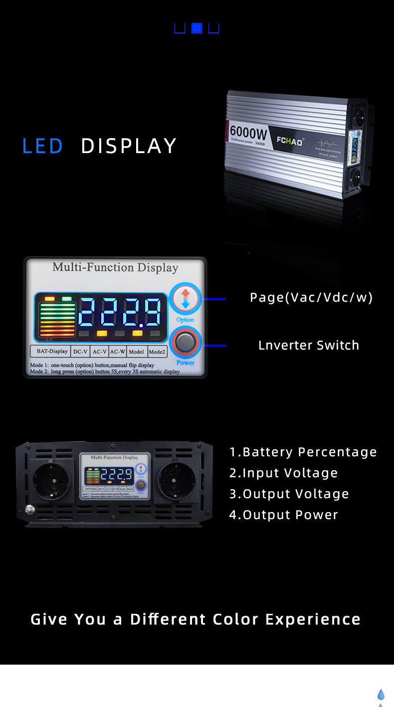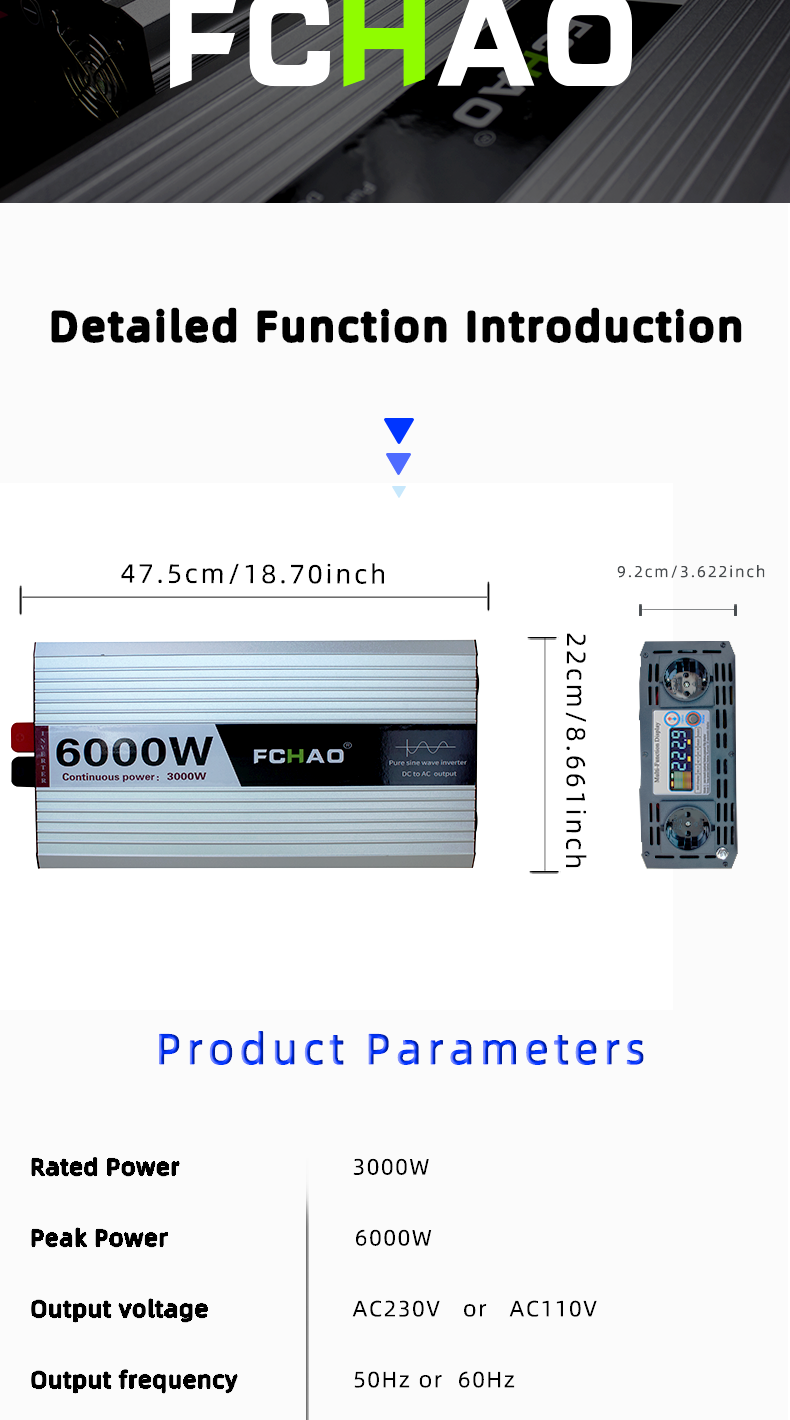 | Rated power: 3000w | Input voltage: DC 12V 24V 48V |