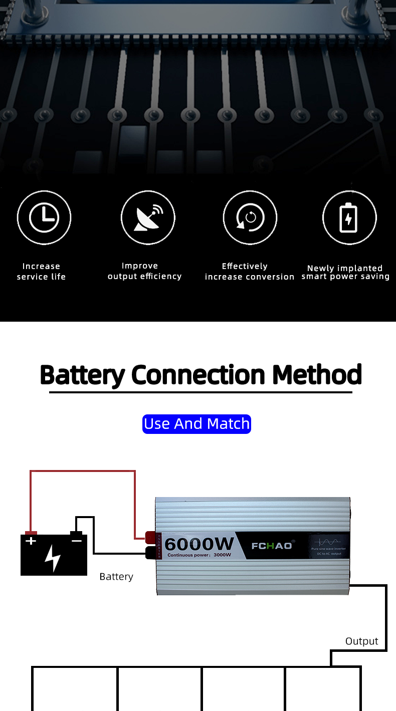 | Output voltage: AC 110V 120V 127V 130V, AC 220V 230V 240V | Output efficiency: 88%-91% |