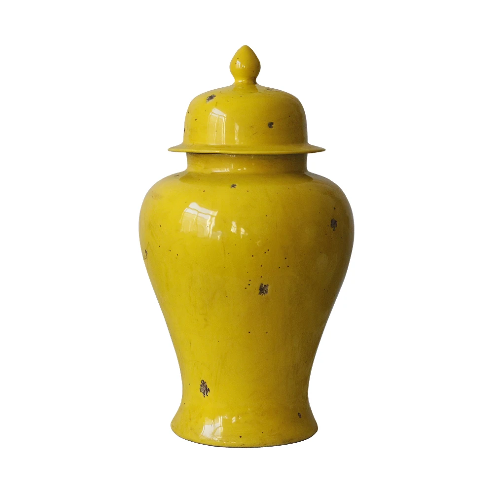 wholesale Chinese ceramic home decoration general jar with lid make antique porcelain temple tank with old orange finished
