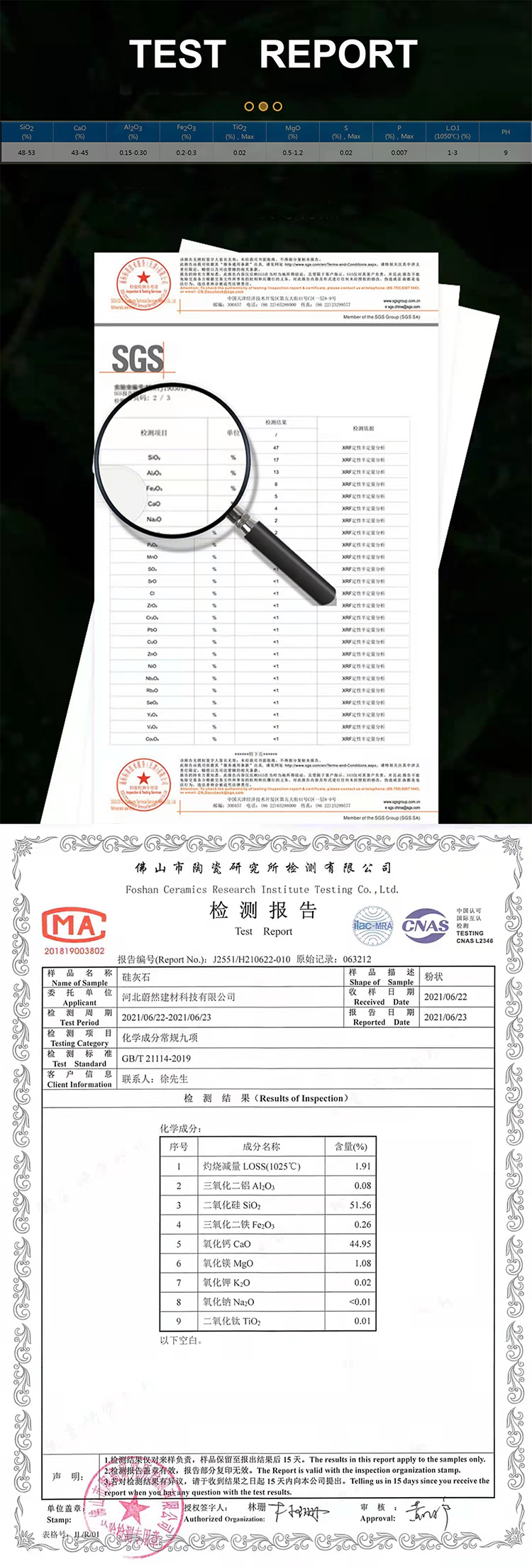 | SiO2 content (%): | 48%-53% | color: | white |