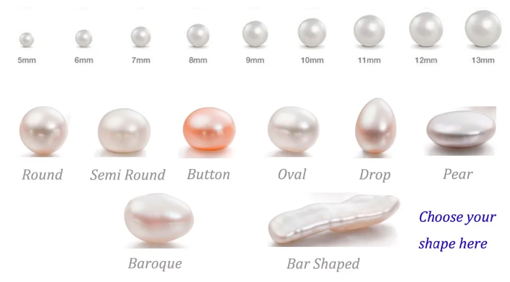 10.0+mmDue to the rarity of occurrence, freshwater pearls often vary in shape and size. Also, larger freshwater pearls are less likely to be round. For these reasons, this size range tends to accentuate the natural cultivation of freshwater pearls.