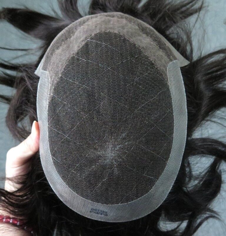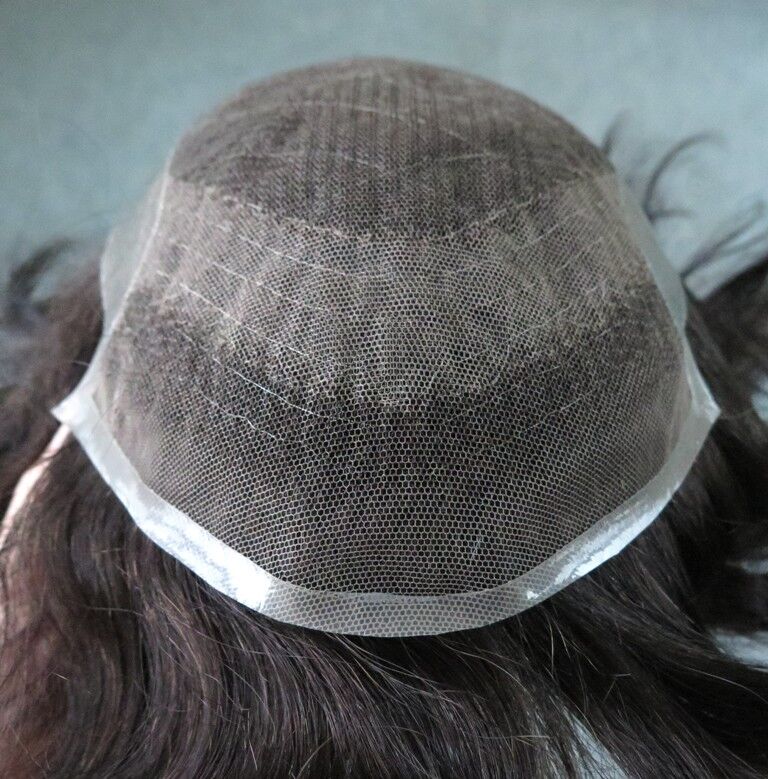 TE0026 Single Mesh Lace + Perimeter Polyester Thin PU Swiss/French Lace Hand Tied Wig Brown Customer Template